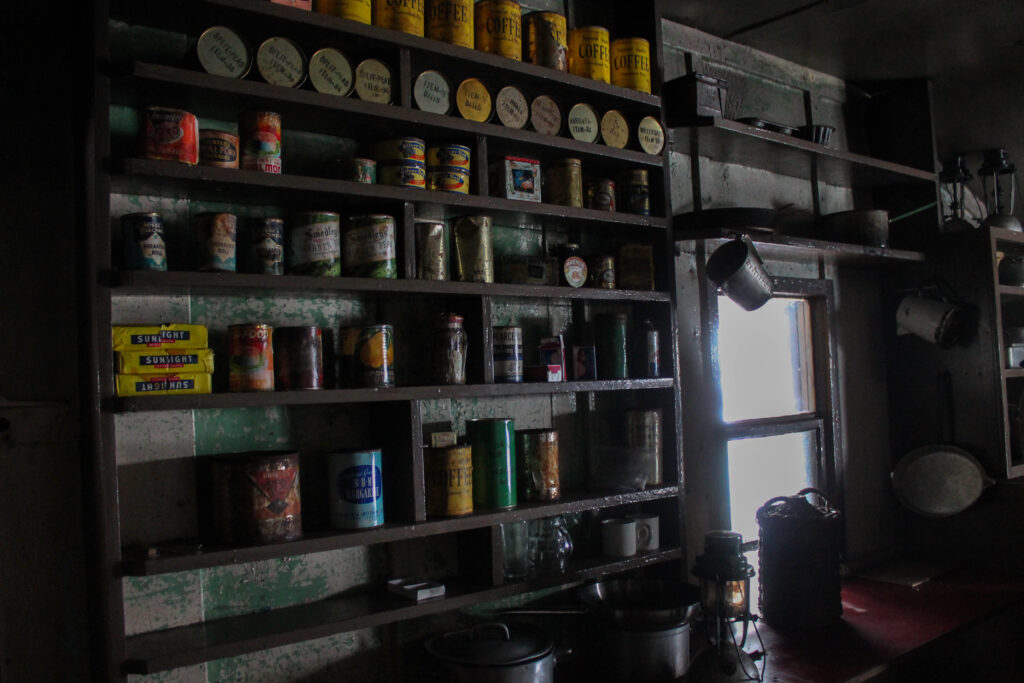 The wooden building remains as it was when it was vacated. Tins of food, books, and board games still sit on the shelves. The kitchen remains well provisioned with coffee, peas, fish, and pork sausages. There was even a jar of marmite to remind me of home. It may well have still been edible. The climate here is incredible for preservation. Always refrigerated the air is free of the microbes that decompose food. The bookshelves were also a very British affair, including spy novels, history books, and as a sign of desperation for reading material through long periods of isolation, transcripts of House of Commons debates. I picked up a smaller book simply entitled ‘The British’. Written by an American it promised to give an educational perspective on the character of the people and must have sat there for tongue in cheek reasons. I enjoyed its opening observation. It stated that the British should not be considered as one people, but rather the English, Scottish, Welsh, and Irish were all separate. While the others were fiercely proud and independent, the English seemed oddly complacent with their place in the world. Decades on, questions of cultural identity within the British Isles are as alive as ever.